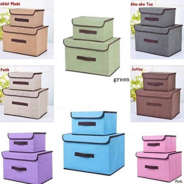 Deskripsi SBS003 - 2 in 1 Colour Storage Box / Tempat Penyimpanan (1pc dpt 2box) SBS003 - 2 in 1 Colour Storage Box / Tempat Penyimpanan (1pc dpt 2box)Ready Warna :* PUTIH / CREAM* COFFEE* HIJAU* ABU-ABU TUATulis pilihan warna di kolom catatan / keterangan. Tanpa keterangan akan kami kirim random.Mohon maaf tidak menerima perubahan variasi warna dari diskusi atau pesan. NB * Warna sesungguhnya mungkin dapat berbeda. Hal ini dikarenakan setiap layar memiliki kemampuan yang berbeda-beda untuk menampilkan warna, kami tidak dapat menjamin bahwa warna yang Anda lihat adalah warna akurat dari produk tersebut.Setiap set terdiri dari 2 box beda ukuran (please allow slight variation on the measurement)Box kecil : 25 cm x 18 cm x 15 cmBox besar : 37 cm x 24 cm x 23 cmMaterial : cotton fabric dengan karton tebalTempat penyimpanan 2 in 1 yang dapat digunakan untuk tempat menyimpan pakaian, mainanan anak, buku, pernak pernik aksesoris, kosmetik.Multifunction box membantu merapikan isi rumah yang berserakan. Design praktis dan modern, mudah disimpan. Pada bagian tutup terdapat perekat jenis velcro.#storagebox#storage#2tingkat#box#boxmainan#boxpenyimpanan#kotakpenyimpanan#perlengkapanrumah#laci#lacikosmetik#lacipenyimpanan#freeong
