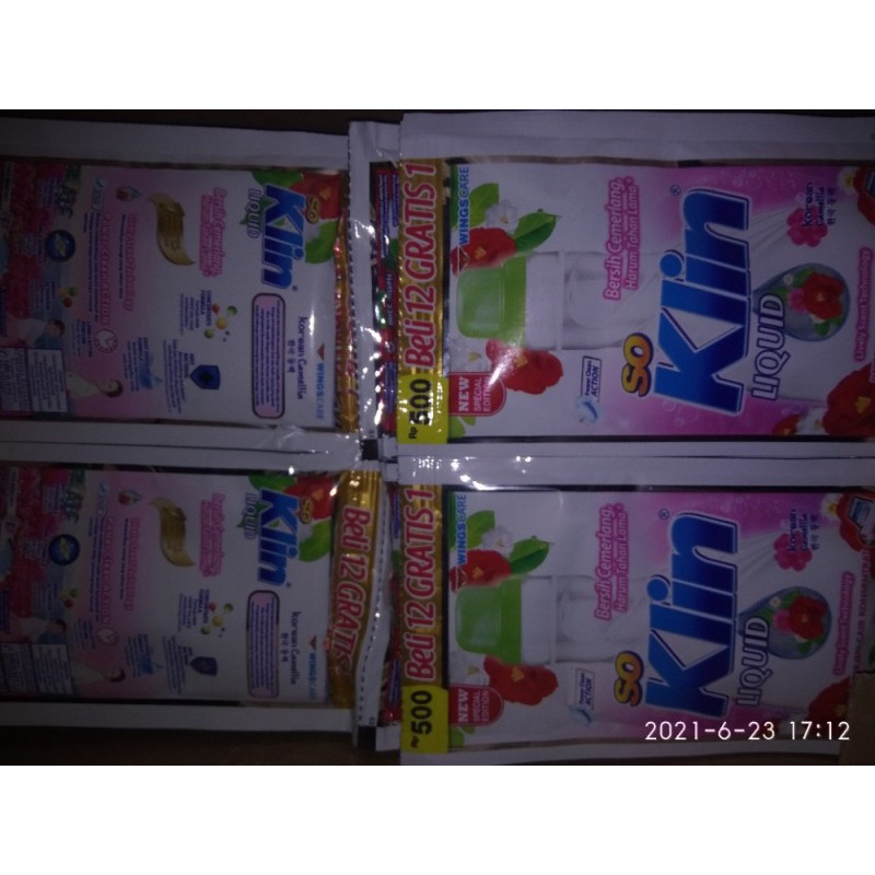 detergent pembersih pakaianSo klin liquid 24mlHarga per 1renceng /12sachetcatatan toko kami,mohon untuk dibaca dan dimengerti:1. sebelum transfer tolong chat dahulu untuk konfirmasi ketersediaan stock serta memastikan barang yang dikirim tidak ada masalah.2. expired yang dicantumkan hanya ilustrasi,yang pasti barang selalu fres no expired3. satu paket maximal 5kg,jika orderan lebih dari 5kg silahkan lakukan 2X transaksi.4. produk yang kami jual bisa di beli satuan jadi bisa belanja bervariasi dengan harga murah dan hemat di ongkir dengan mengguanakan fasilitas free ongkir.5.untuk beli 1 renceng/1 karton tidak bisa campur,rasa,warna atau varian di tulis dikolom catatan/chat kami di aplikasi e,jika tidak kami kirim random.6. jika variai/warna/pilihan yang anda pilih kosong kami terlebih dahulu menginformasikan.7. return barang ongkir di bayar buyer,untuk rusak pengiriman tidak terima return8. berat paket mungkin tidak persisi karena berbagai hal seperti tambahan packing atau kemasan produk yg memakai plastik atau box tambahan dan lainnya.terima kasih telah berkunjung.#kelontongan#sembako#tokosembako#Sembakomurah#grosirkelontongan#Kebutuhanrumahtangga#tokomurah#grosirsembako#bahankue#jajanananak#cemilan#snack#minuman#makanan#agenkelont