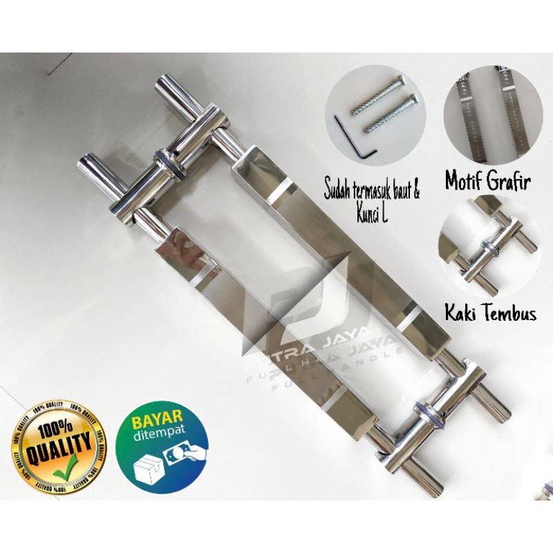 TARIKAN / "PULL HANDLE UTAMA" PINTU RUMAH ELEGAN & MEWAH ➡️Aslinya lebih bagus daripada gambarnya, lebih mulus dan realpict 100%. Garansi uang kembali jika tidak sesuai dengan gambar ▪︎Model : Handle Sunduk Kotak▪︎Bahan : Stanlise, kuat dan tahan lama ▪︎Panjang : 45 cm ▪︎Harga tertera adalah harga per 1 pasang, mendapat 2 buah handle▪︎Handmade dari tangan pertama, selalu ada/ ready stok karena kami produksi sendiri. Dijamin harga lebih murah▪︎TERSEDIA WARNA ;