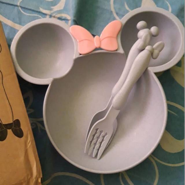 Piring Makan Anak Mickey Minnie Set Sendok Garpu /Mickey Minnie Children Pl