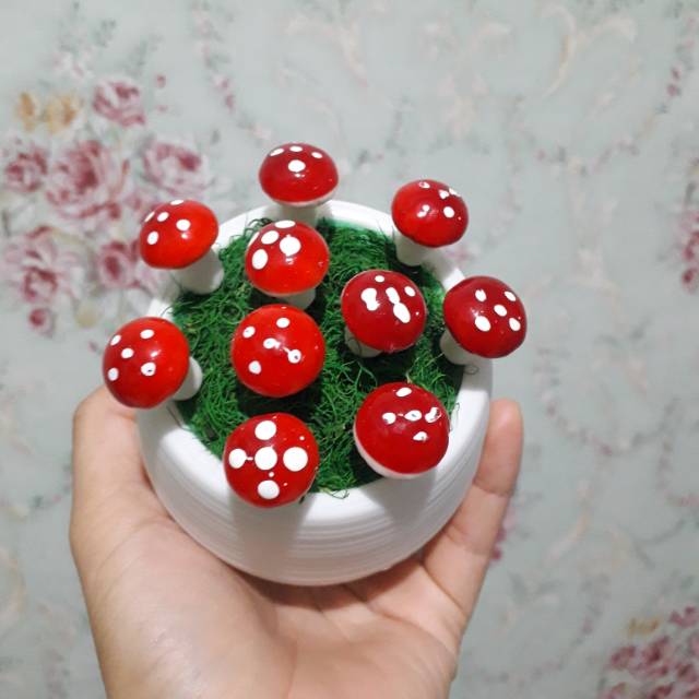 Jual Murah Perlengkapan di Kabupaten Brebes Hiasan Jamur Mini Pot + Jamur/ Bunga Plastik / Bunga Artificial / Hiasan Shabby / Home Decor dari Tidak Ada Merek Kota Tangerang Selatan